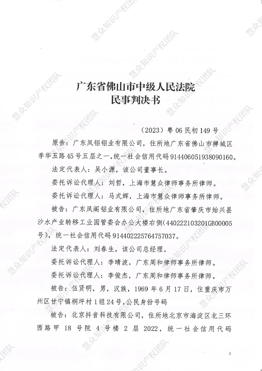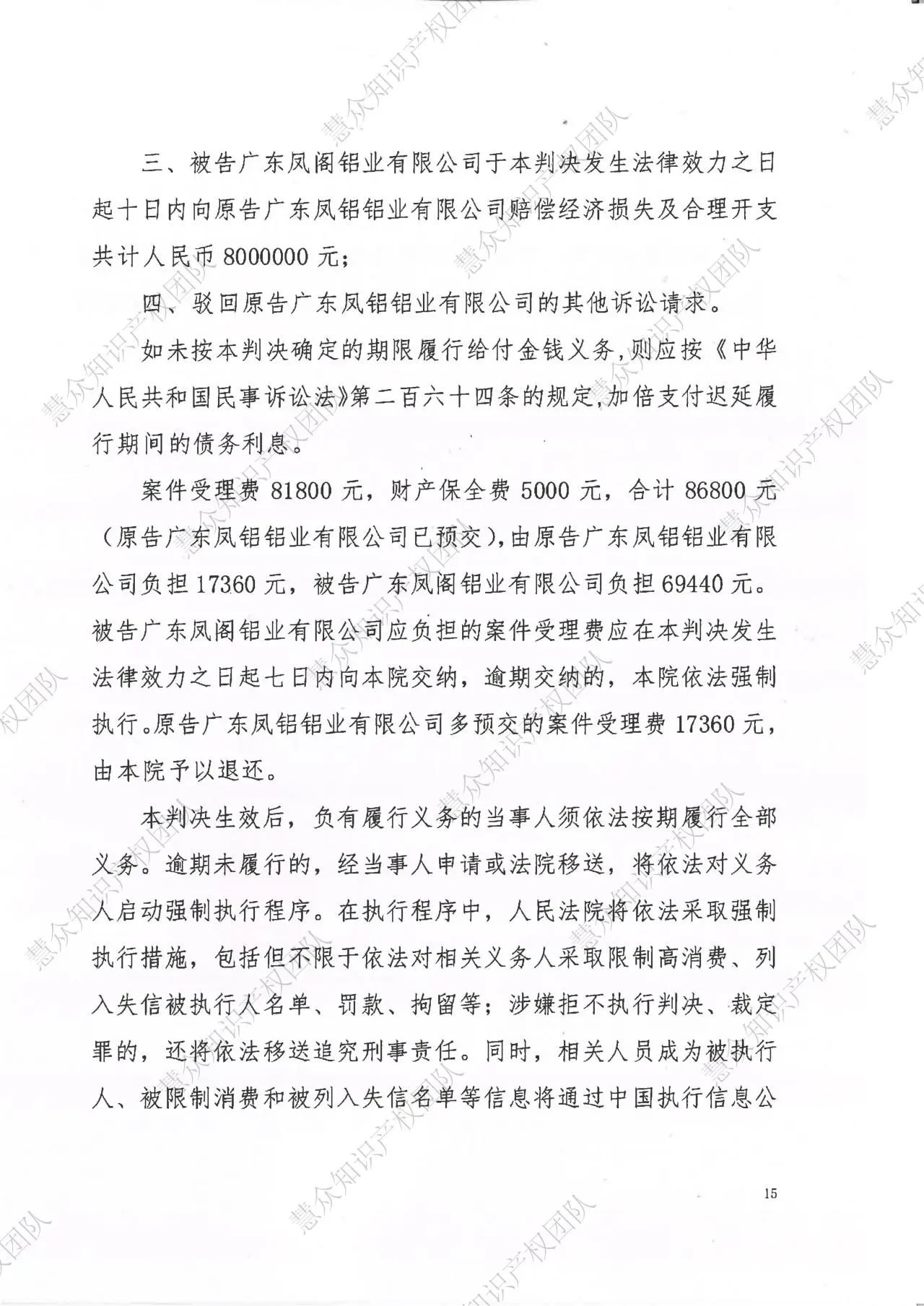 连云港判赔800万!辉知队代理“凤铝”商标维权案胜诉
